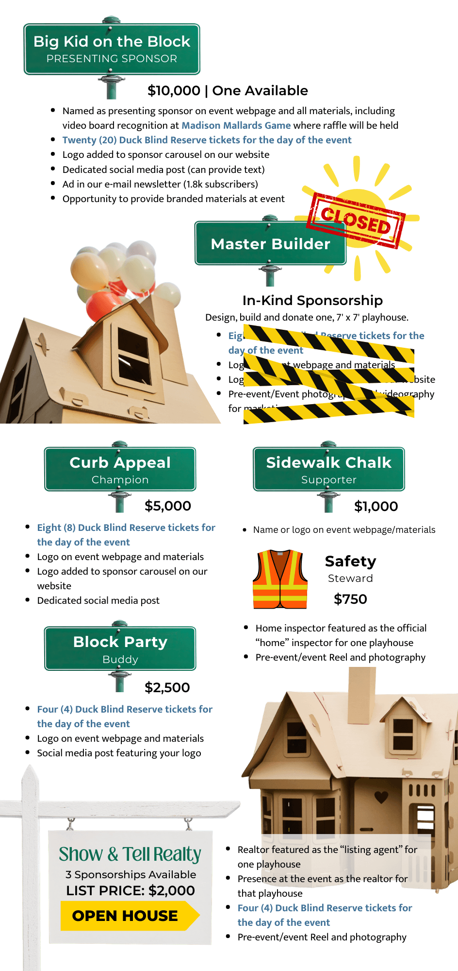 Sponsorships can be submitted below. Interested in building a playhouse? Contact Sarah Berndt: sarab@canopycenter.org.